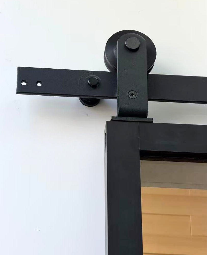 The Aluminium Glass Bifold Barn Door combines modern interior design aesthetics with a classic top-mounted barn door sliding system. Finished with black heavy-duty barn door rollers, it delivers a strong industrial character while allowing natural light to flow freely through the space.